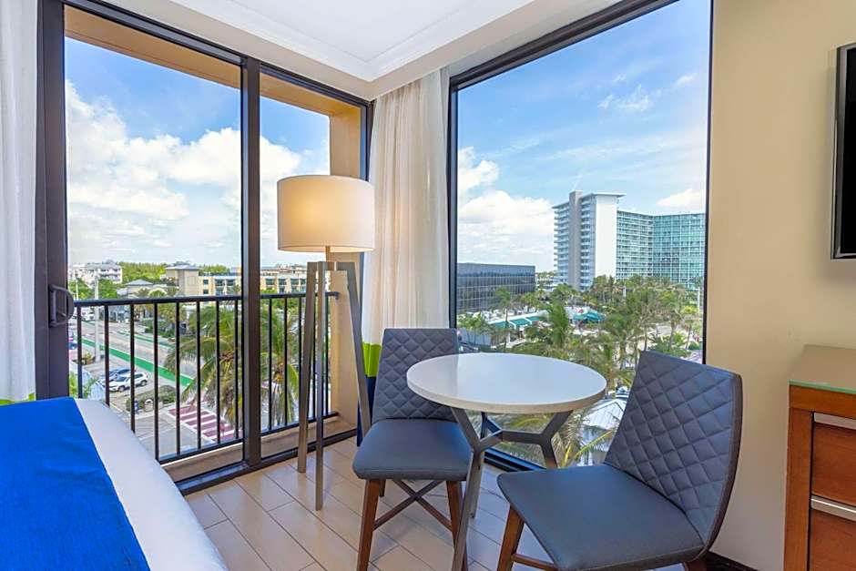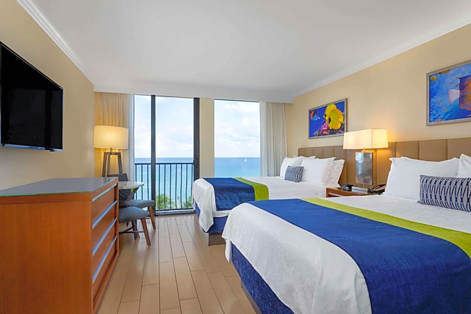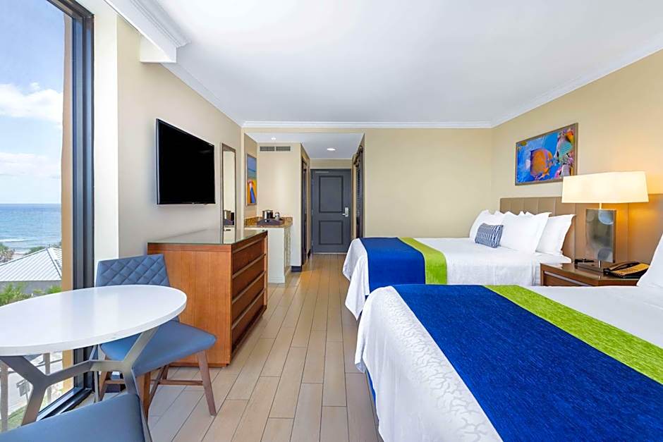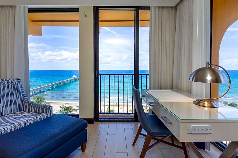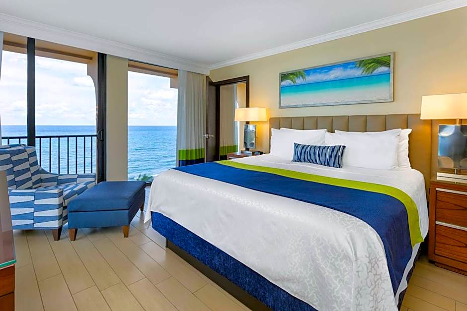 This corner room offers floor-to-ceiling windows with a view of the ocean. A small refrigerator, coffee-making facilities and a private bathroom are provided.