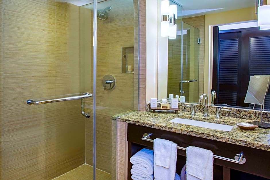 Featuring floor-to-ceiling windows, this suite includes a separate seating area with a sofa bed. Additional amenities include a flat-screen TV and a private bathroom with a spacious bath and separate shower.